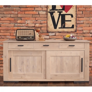 Descrição Aparador 2 Portas Correr, 3 Gavetas com Corrediças Metal. Interior 1 Divisão, 2 Prateleiras Madeira Tamanho L.205…